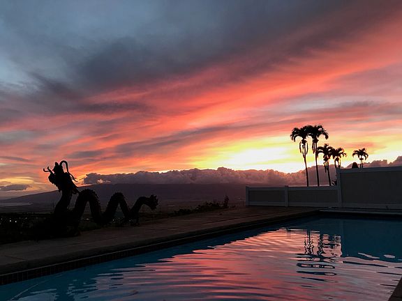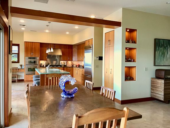 Beautiful 3-bedroom, 3.5-bath single-level home. Located in Kulamalu Hilltop, an exclusive 12-lot gated community. Well designed floor plan with Asian accents such as a Genkan Japanese entry, high quality woodwork and finishes. As soon as you walk in the home you will be amazed by the view through over 40 feet of sliding glass looking over a huge green space owned by the homeowners association, then beyond to an incredible bi-coastal and mountain view. The green space frequently has deer. The kitchen has elegant cabinets and counters, and top-of-the-line appliances including a gas stove. The island offers comfortable seating creating a natural "hang-out" area The living and kitchen areas open onto a 1650 SF patio area. includes: - Heated, in-ground pool electric cover - A pool-side bathroom, outdoor shower, storage room and access to a separate fenced yard and back of garage. The covered part of the patio can be enclosed by automatic floor to ceiling blinds creating bug-free outdoor dining. This has also been used for visiting kids who want to sleep outside. The generous master bedroom has a huge walk-in closet with built-ins as well as an office that faces the pool, and of course, more amazing views. Electric curtains can open in the mornings to let in the sun and view. Two more large bedrooms offer flexibility. One is currently setup for visiting company with two beds. Oversized garage with over 10' ceilings and large attic storage space make for a great workshop. Concrete tile roof provides long life and the 20 solar panels mean very low electric bills. (These are grandfathered in to Net Metering) The home has stucco siding, 10' ceilings, travertine flooring, and 2 central AC systems. House is pre-wired for backup generator. 3% Agent Courtesy. Give us a call!