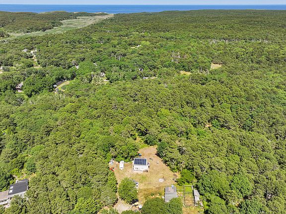 Truro Treasure with Yurt! The home on this special, retreat-style property, on over an acre of land, features one bedroom and a commercial kitchen, and ***the septic will allow for THREE bedrooms with the commercial kitchen, or FIVE bedrooms without commercial kitchen.*** With room for a pool and/or an ADU, the possibilities are endless! Situated at the end of a dirt road with nearby walking trails, you're surrounded by conservation and National Seashore land. Enjoy your coffee while watching the sunrise through the woods. Inside, create your meals in the homey stainless steel, previously certified commercial kitchen. The large upstairs bedroom has small efficiency kitchen space + loft. Mini-splits on both levels! Stroll down the path to your own private yurt - a creative space for yoga, art, writing, music -- you decide! It's equipped with a Jotul wood stove that will keep you cozy all night. Home recently fitted with solar panels + new Tesla Powerwall battery that functions as a backup generator; in case of power outage keeps you charged up to 3 days. New 10' x 12' storage shed. Endless possibilities! This sustainable retreat-style property is just waiting for you!