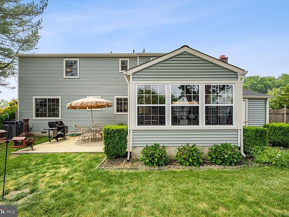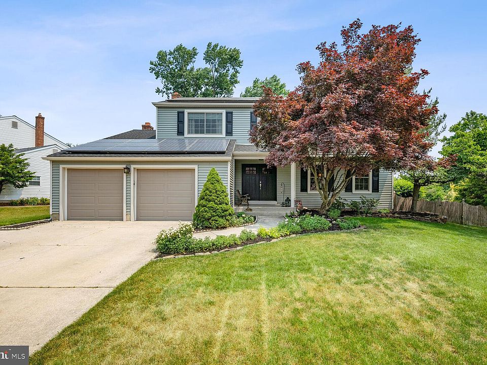 MULTIPLE OFFERS REC'D. OFFER DEADLINE WED. JUNE 14TH AT 8PM. Video Tour! Welcome home to your updated and expanded Concord model in Marlton's desirable Willow Ridge! Situated on a fenced in corner - end of street lot with township parks a block away. Brand New in 2023 are the Roof, Siding, Gutters, French Front Doors, , Front Porch Posts, Primary Bathroom and a refreshed upper level full bath. Plus the windows (except sunroom) have been replaced between 2023 to 2017; most have Hunter Douglas custom blinds too! Main level half bath redone in 2022. The Heat and AC were also redone in 2018, Leased Solar Panels in 2016 reducing your electric bill to almost zero! As you meander up the walkway past the two car garage, to the covered front porch you will notice the beautiful garden with Dogwoods, Weeping Cherry, Burning Bush, Japanese Maple, Mums, Mini-Rose Bushes and Ferns. As you enter the new front doors, the double coat closet is to the left and over to the right is the formal living room with crown molding, which flows into the dining room with Cherry Hardwood Floors and chair rail molding. The eat-in kitchen has DuraCeramic tile floors, granite counters, a tile backsplash and a walk in pantry closet. The generous sized family room has hardwood floors, a wood burning fireplace and leading through the glass french doors is your three season sunroom addition (15 x 12). Leave the doors open to cool and heat this fabulous room! Head on outside to your concrete patio for some grilling and relaxing! The fenced in yard also features an attached walk in shed for all your outdoor equipment. The laundry room with mud room sink, exterior side access, pull down attic staircase (partially floored) and the two-car garage with plentiful storage nooks and shelving are conveniently past the updated half bathroom off of the family room. The second level features the primary bedroom to your left and three bedrooms to your right. The spacious primary bedroom has two large walk in closets, dressing area (currently used as a home office) and a remodeled full bath with tiled stall shower. All four bedrooms have ceiling fans and closets with organizers too! The refreshed hall bathroom has a linen closet plus there is an additional linen closet in the upper level landing - plenty of storage in this home! The crawl space has concrete flooring, a french drainage system and a sump pump. This well loved home is move-in ready and waiting for the next owner to make it theirs, and Sellers will offer a One Year Home Warranty with the right offer too! Fall in Love and Make an Offer today!
