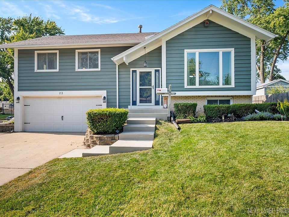 This is it! Welcome to Boulder Hill! This beautiful split-level home has been thoughtfully updated from top to bottom. Step inside to a light-filled main living area featuring vaulted ceilings, fresh neutral paint, crisp white trim, and a beautifully refinished fireplace. All three bedrooms feature new Luxury Vinyl Plank flooring, new interior doors, and updated trim. The renovated kitchen offers modern lighting, new countertops, under-cabinet lighting, and stainless steel appliances - all less than 5 years old, including a brand-new stove and microwave. The primary suite includes a fully renovated private bathroom, while the home's mechanicals - including the furnace, A/C, and water heater - are also less than 5 years old. Additional recent improvements include a new attic fan, new window screens, and a 2024 garage door opener. The deck has been sanded and refinished, and the exterior has been freshly painted. Curb appeal shines with professional landscaping, new sod in the front and backyard, and a welcoming brand new front door and entry steps. Additionally, the garage is extra deep at 27 feet - plenty of room for a workshop, storage or mancave. Move-in ready, meticulously maintained and priced to sell!