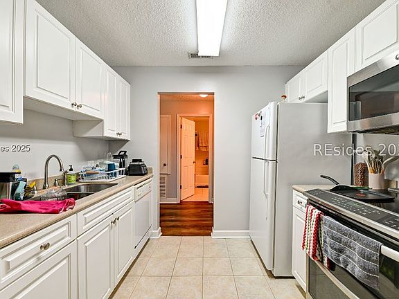 Discover one of the best one-bedroom condo locations in The Villas at Old South! Tucked beneath grand live oaks, this beautifully refreshed home offers a peaceful, shaded balcony overlooking a tranquil green space. Inside, you'll find a bright, open layout with vaulted ceilings, luxury vinyl and tile flooring, 2" wood blinds, and detailed trim work. The kitchen shines with stainless steel appliances and an inviting dining nook that opens to the airy living room. The HVAC system was replaced in April 2024 for peace of mind. Enjoy resort-style living with access to a sparkling pool, scenic lagoons, leisure trails, a dog park, and a car wash station all within a pet-friendly community. Perfectly positioned just off the Hilton Head bridge, you'll love being minutes from beaches, shopping, dining, and Old Town Bluffton. Ideal as a full-time residence, weekend escape, or smart investment opportunity!
