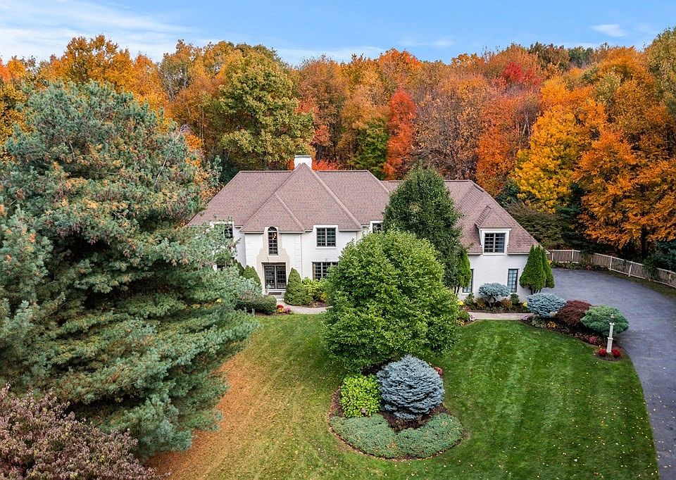 Wow! Unique brick front French Colonial Estate w/4.8 acres on cul-de-sac with lush gardens, wooded trails and even a small pond. Soaring ceilings, 2 story foyer, oversized living room with grand fireplace plus 2 story windows and hidden bar! Spacious kitchen w/2-tier quartz counters, gas range and floating vent hood w/extra refrigerator drawers in the mud/laundry room. Sunken dining room features a unique coffered ceiling! 1st floor master boasts a balcony w/backyard views, huge walk-in closet, stunning bathroom with soaking tub, plus shower. Rich hardwood floors throughout. Take either staircase to the 2nd floor and find 3-4 more bedrooms, 2 w/en-suite, large family/media room over a 3 car garage (2nd floor Master?) and hotel-like hallways w/exhibit shelving and gallery views of rooms below. This home is gracious, airy, and lives much larger than its square footage. Extra 2000+ sq feet unfinished space in basement w/high ceiling, french doors, windows and backyard walkout.