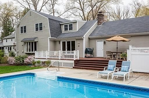 Pristine Colonial in ideal location!! Room for all in this spacious home with updates galore!! Gracious Foyer welcomes you and leads to sunken Living room and nearby Dining Room .Gorgeous New Vartanian Kitchen will delight all with built in granite island /table and view of fabulous rear private yard! Sunlight streams in thru all the oversized bow windows. Wonderful flow with Open plan for entertaining and gatherings . Family Room with fireplace and sliders to exterior.Large Master Bedroom with remodeled Bath;,plus 4 additional bedrooms,one used as an office.Shiny hardwoods on most of First floor..Outside Living area is a huge bonus with Inground Pool,Huge mahogany deck ,shed and fenced yard!..plus , Newer windows,heating and AC. Don't miss out!