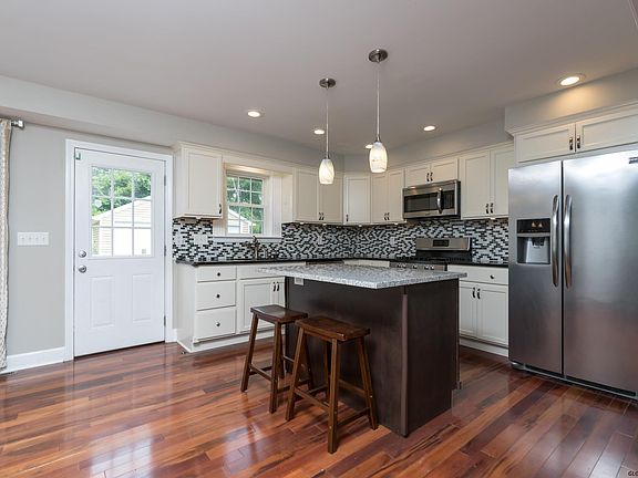 Welcome to almost 2,000 sf of perfect! Four years ago this home was totally rebuilt; the only original feature is the basement! First floor boasts a sun-drenched open floor plan with half bath, hardwood floors, fantastic eat-in kitchen with stainless appliances, granite counters and breakfast bar. There is also a large bedroom with a custom 3/4 bath and walk-in closet, as well as tons of large windows to let the sunlight in! Upstairs boasts three bedrooms and a full bath. Outdoors has a two car garage, deck and spacious yard, as well as seamless rain gutters. New new new!!!