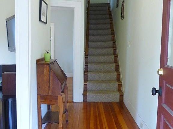 Modern and sun-filled with windows on 3 sides gives this condo the feel of a single family home. Awesome in-town location, this stylish and thoughtfully updated townhouse features 3 bedrooms and 1.5 baths. Beautiful hardwood, pine, and tile floors throughout. Large kitchen with ample cabinets and butcher-block counters leads to mudroom and french door to rear porch and sweet backyard. Flowing floor plan is great for entertaining with living room open to spacious dining room through pocket doors. Upstairs are 3 bedrooms and full bath. Walk-up attic adds potential for even more living space, plus full basement and large shed. Blown-in insulation added in '09, young architectural shingle roof, gas H20, and replacement windows. Low condo fee includes water, sewer, snow removal, refuse removal, and yard maintenance. Gracious yet affordable downtown living that's move-in ready!