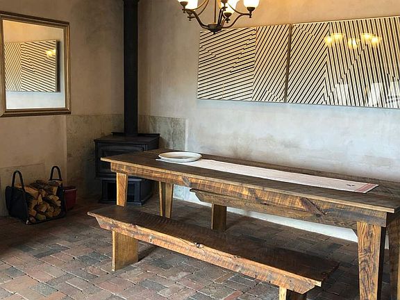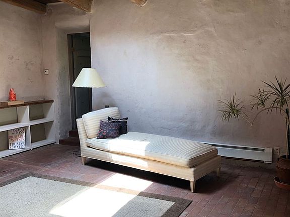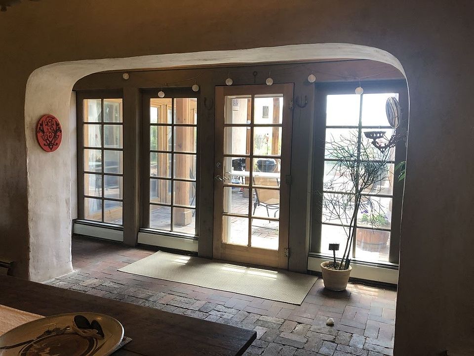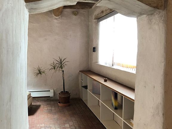 Historic Home/ Artist Studio A true jewel of Taos, this historic adobe has Northern New Mexico charm with a Bauhaus twist. Thick walls make this home solid and quiet. The total square footage is approx. 2,750 square ft. The attached studio is 18 x 28 ft. with adjacent storage 11 x 20 ft. with many built-in shelves. 18 ft. ceilings, four skylights and Northern exposure provide the perfect light for painters and printmakers. The house was designed by the former owner Earl Stroh who was one of the renowned Taos Modernist painters.The lot is .875 acres and has 2.5-acre ft. of water rights to the acequia across the street. The house is heated by Natural Gas and hot water baseboard,The floors are mostly brick with cement in the studio and finished/stained cement in the master and wood in the second bedroom. There are five zones in the house, two boilers, and two hot water heaters. As you enter from the street there is a decorative privacy wall protecting the front door from wind and street noise and a garden with flowering Ivy. The front entrance has a slotted wooden screen and a Spanish style custom door. A versatile floor plan allows for a mother-in-law suite or provide rental income. The living room has brick floors (recycled from the fire at the Santa Fe Prison), skylights, built-in bookshelves, four French door style windows, and a central kiva fireplace. The fireplace has a stone hearth and is a curved adobe wall that truly throws the heat, behind it is an area I used as a guest bedroom and fits a queen size bed. The historic part of the house contains the dining room, kitchen, library and the sleeping quarters of the Master and is dated circa 1870. These rooms have high ceilings and hand adzed vigas. There is a woodstove in the corner of the dining room with marble tile behind it. A bar divides the dining room from the kitchen. There is a Gas stove, dishwasher, and fridge. The cabinets are deep and wide with a pantry at the far end and plenty of shelving. Between the two bedrooms is a well-lit library with skylights, brick tile, and built-in bookshelves. The home has two very large bedrooms; the Master has a sleeping area with a cove ceiling, dressing area with two large closets with built-in cabinets and a step down to a large attached bath. There is a closet here for a stackable washer and dryer. The bath has a Japanese tub 48 in. deep with seating for two and six jets. There is a stall shower and a WC for the toilet. The second bedroom is a converted garage, brightly lit with a door to the outside and a wood floor. Adjacent to the second bedroom is a large storage area that backs up to the master bath and plumbing. This would be a great location for an extra bath. The central courtyard is also brick with surrounding wooden portal and central opening offering views to the southern mountains and Picuris Peak. There is a fenced yard with an old growth ponderosa and other trees and perennials. The backfield has a surrounding privacy fence and could easily be used as a horse property with plenty of room for a barn. This is a beautiful and interesting home with a lot of history and a wonderful creative space. Quiet and private yet close to town.
