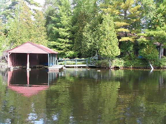 • Exterior Features: Trees, Storage Shed, Outbuildings, Outdoor Lighting, Boat House, Seasonal Usage, Guest House