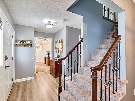 SHOWINGS START SATURDAY 2/8 AT 10 AM! PUBLIC OPEN HOUSE SATURDAY 2/8 NOON-2 PM! COME BE WOWED BY THIS 2STY PROPERTY ON A CULDESAC WITH AN AMAZING LARGE, FENCED YARD! Walk-out lower level with lower patio, updated deck with low maintenance railings and stairs, firepit and fence professionally installed in 2021 by Chesterfield Fence and Deck start the updates here. Living room converted to main floor office with glass door, light and bright kitchen boasts quartz countertops and subway tile installed in 2024, luxury laminate flooring (2024) installed on main level, primary bath features new tile bath surround and updated shower with seamless glass doors and tile, crown molding and recessed lighting added in the living room and office, new furnace in 2021 and much more! This beautiful home is priced to sell and can accommodate a fairly quick closing!