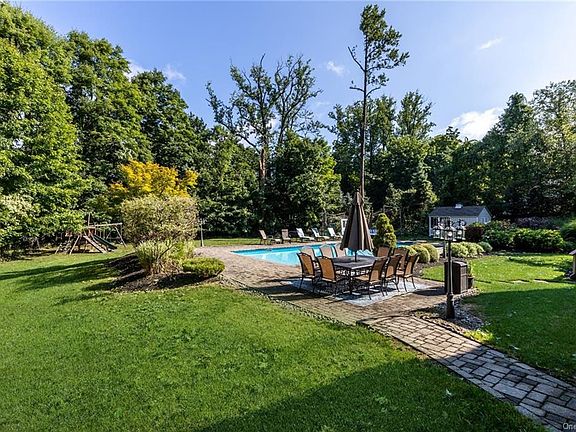 Fall in Love as soon as you Arrive to this Fabulous Farmhouse Colonial Located in Affluent Montebello Pines. Perfectly Positioned Amid a Serene & Quite Tree Lined Street. Resort Style Yard Heated Salt Water in Ground Pool, Cabana & Pond, Professional Matured Landscaping, Paved Front & Backyard Walkway, Patio & Surrounding Pool. Elegant Home Features Two Story Entry, Formal Dining & Living Room, Two Story Great Room, Masonry Fireplace, Custom Molding & Columns. Gourmet Kitchen with Granite Counter, Stainless Steel Appliances & Pantry abuts Great Room, Perfect Entertainers Dream. First Floor Bedroom, Bath & Laundry Room all with Hardwood Floors. Master Bedroom Suite Tray Ceiling, Master Bath, Whirlpool Tub, Double Sink plus Two Walk-in California Closets. Three Bedrooms & Bathroom all with Hardwood Floors. Finished Basement Holds, Bedroom, Bath, Family Room, Home Office, Wine Cellar & Plenty of Storage. Suffern Schools, Close to All. Do not Miss This Rare Opportunity!