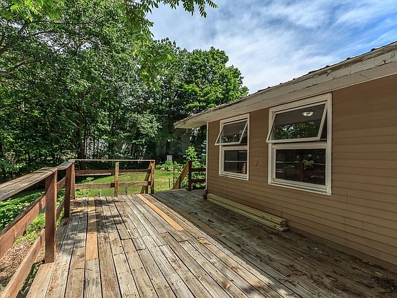 Cute cape on a sloping city lot in desirable neighborhood where a large sunroom welcomes you in. Nicely sized living room has hardwood floor plus a small additional room that could serve as a home office. Oversized eat in kitchen has plenty of cupboards. There are two bedrooms upstairs and each has an adjoining small room that has a potential for a walk-in closet. Bedrooms have newly installed windows, there is a new ceiling in the living room and new staircase coming off the spacious deck overlooking the private back yard. This house has a walk-out basement perfect for a workshop. Cash or conventional mortgage only; home is being sold AS IS.