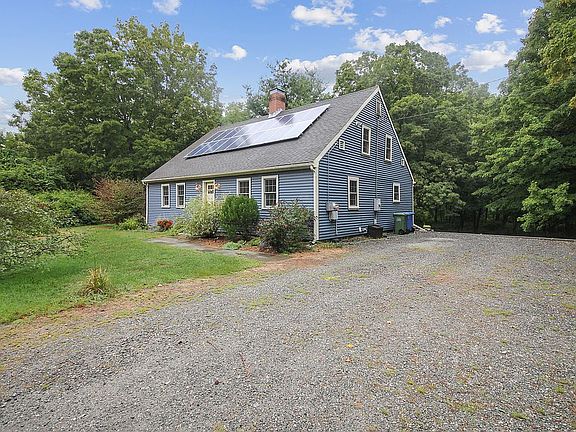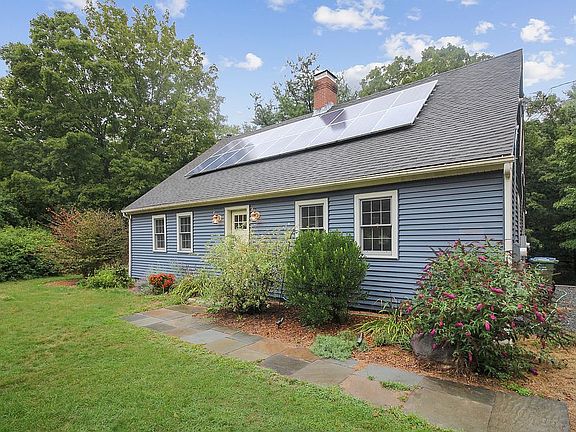 Take a step back in time with this magnificent Andover antique. The center-chimney Colonial cape was built in 1713, and today you can live in a home where Connecticut history and modern style and comfort intersect. 3br/2ba loaded with colonial-era charm, including 3 fireplaces with wood-burning stoves! The wide-plank wood floors and post & beam construction testify to the strength of centuries old construction. With Thermopane windows throughout, ductless a/c, and vinyl siding boast just some of the modern amenities that make this charming space "at home in the 21st century." Brand new wall-to-wall carpeting in the living room and den. Main floor bedroom, bath, and laundry. Solar panels and an open-concept kitchen and dining area. Recently rebuilt flat stone wall leads into 2.28 acres, wooded and open, providing direct access to the 20-mile Hop River State Park Trail. Convenient to UCONN and Rt 6 and everything that Connecticut has to offer.