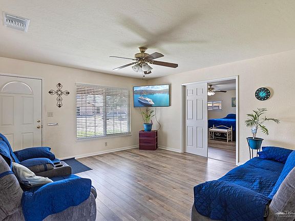 Look No Further!! Fall in love with this adorable home. Sitting at the end of a quiet cul-de-sac, on an oversized lot, this 4BD/2BA, 1,466 SF split-wing home has so much to offer. Enter the large living room with picture windows and natural sunlight. To the left is the primary suite with a large bedroom, walk-in closet, ensuite bathroom with dual vanities and private access to the back yard. To the right is a full bathroom and three bedrooms, all with original hardwood floors in various stages of refinishing. Quaint dining area, indoor laundry with sink, and kitchen with multiple workstations and custom quaker style cabinetry. This updated property is bursting with charm: updated windows, newer roof, water heater, garage door opener, NEW HVAC system with central heat/air including ducting and vents. But wait until you see the backyard! Feel the joy under the covered patio with access from the dining area and primary bathroom. Plus, the secondary fenced area behind the 2-car detached garage is perfect for gardening or a playground. An abundance of RV, boat, or toy storage on the side and behind the garage, which has a separate area in the back for storage. All city utilities, appliances, and turn-key. Come check out this little gem in the city and see why it's not just a house, it's your home!!