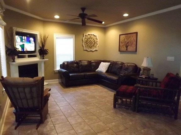 THIS 3BR/2BA 3 MILES FROM THE LAKE!! MASTER BOASTS SAMSUNG SMART TV W/KING SIZE BED-MASTER BATH W/HUGE WALK IN CLOSET. MASTER AND 2ND BR BOTH HAVE DOOR TO SCREENED IN BACK PORCH. 2ND BR WITH QUEEN BED & TV. 3RD BR WITH TWIN BEDS, TV, & CHEST. LIVING ROOM WITH ELECTRIC FIREPLACE, LEATHER SECTIONAL AND FLAT SCREEN TV WITH BLUE RAY PLAYER. DISTRESSED DINING TABLE & 6 CHAIRS + 4 BAR STOOLS. PROPERTY EQUIPPED WITH ADT SECURITY. GATED COMMUNITY W/3 POOLS,TENNIS COURT & TENNIS COURT & GYM.