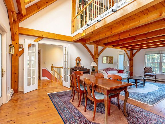 Extraordinary Connelly Post and Beam residence in historic Pennellville. Dynamic Bow Roof section of the home built in the mid 1980s with a significant north side addition constructed approximately 1994. Beautiful exposed timber framing of solid wood with mortise-and-tenon connections secured with wood pegs on full display throughout. A full staircase leads you from the front entry up to the main living areas. Kitchen with oak cabinetry, pine floors and wood stove in a lovely sitting area. Adjacent dining area. Sun drenched family room with vaulted ceiling and pine floor. Front to back living room with pine floor, custom fireplace with stunning mantel and hand rubbed cherry cabinets. Master bedroom suite. Spacious loft with exposed beams, built in shelving, skylights and much more. Two private sun decks, 3.5 baths, oil HWBB heat, heat pump, finished lower level, two car garage, whole house on demand generator & more.Just minutes to Bowdoin College, Pennellville is a unique and highly desirable niche featuring significant ship building history and original historic homes. The Pennell family reportedly built around 70 ships over a span of approximately 114 years. Set privately at the end of a long gravel drive, this lovely home abuts conserved land and is just a short stroll to Middle Bay for swimming and kayaking at Simpsons Point.