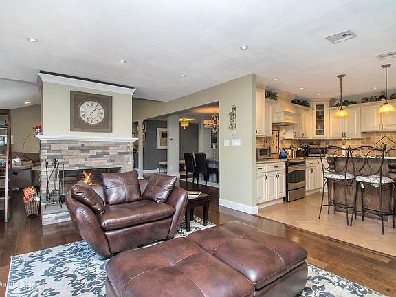 Welcome to 23 Peppermill Court. A tasteful and updated modern ranch that sits on a half-acre cul de sac in the award-winning Commack School District. Enjoy quiet outdoor family nights in a gracious backyard with a large fire pit and all new pavers which guide you around the front of the house. The brand new asphalt driveway leads into a two-car attached garage. Entertain guests in front of a magnificent duel fireplace. Updated with craftsmanship and style, this home features a contemporary open floorplan, crown molding throughout, all new LED high-hats, and hardwood floors throughout. A large custom kitchen with gorgeous backsplash and new appliances. Two new updated bathrooms, new two-car garage doors, brand new top-ranking broiler, in-ground sprinklers, and much, much more!