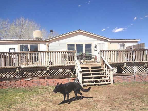 This is a very spacious mobile home with front deck, multiple outbuildings, an arena, fenced and cross-fenced, partially wooded property with gorgeous views in all directions. Some passive solar and wood stove help heat it in winter, large trees provide summer shade. Home needs some cosmetic repairs but is priced accordingly.