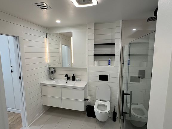 Luxury fully furnished. This beautifully upgraded apartment offers modern living with the perfect balance of comfort and style. The spacious, open-concept floor plan features freshly renovated interiors with brand-new hardwood flooring throughout and updated lighting fixtures that add a sleek, contemporary feel. The spacious living area features a brand-new pull-out sofa, providing additional sleeping space for guests, along with a sleek coffee table to complement the modern decor. Enjoy your favorite shows on the state-of-the-art 65-inch Smart LED TV, which is perfect for streaming and entertainment. The unit also includes high-quality furniture throughout, ensuring a turnkey move-in experience. The fully equipped kitchen boasts with professional appliances and heated floors, quartz countertops, and custom cabinetry, making it ideal for both cooking and entertaining. The bedroom is generously sized, with ample closet space and large windows that let in plenty of natural light. The updated bathroom with heated floors includes a luxurious rain shower, modern tile finishes, and a stylish vanity. For added convenience, the unit also comes with an in-unit washer and dryer. The property offers residents access to on-site amenities such as a fitness center,pool, secure parking, and a beautifully landscaped courtyard for relaxation. With its prime location near public transportation, shopping, and dining, this is the perfect place to call home. 1 year