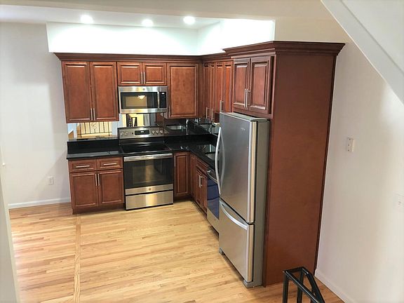 Stunning, Totally renovated level Townhouse, Gorgeous kitchen with Stainless steel appliances, granite counters, mirrored back splash. Spacious Living room with gleaming wood floors. Large Master bedroom with huge closet and New Master bath. Finished walk out lower level with Full Bath and washer/dryer hook ups. 2 Off street parking, Walk To Train. NO PETS. EXCELLENT CREDIT ONLY.