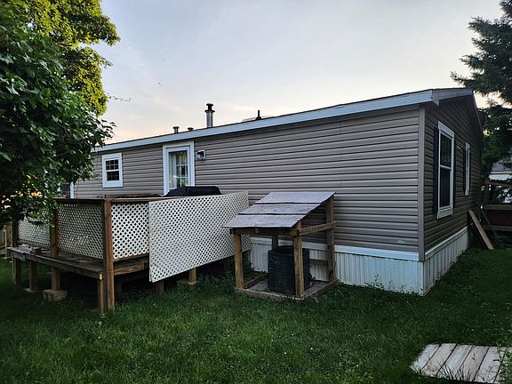 Two Bedroom partially furnished Home with many extras now available at Pine Hill Mobile Home Park. This double-wide with central AC has many updates and add-ons. The front entrance deck has a chair lift and added extended covering above. The unit is handicap friendly. The side deck has a ramp and ample room for furniture and grills. The large kitchen/ dining area has new vinyl flooring. The living room is conveniently open to the kitchen area. Closets and Utility area have custom added shelving. Plenty of storage throughout. The primary bath includes a glass shower with three controls plus message jets. The AC, generator, and fuel tank all have roofs. The lot has blueberry and raspberry bushes. New windows in 2022. Washer/Dryer, extra freezer, couch, recliner, end tables, coffee table, TV, bookcases, gas grills, generator, and center island stools all included with sale. Monthly fee is only $360 and the annual Tax is only $736. One pet under 10lbs allowed.