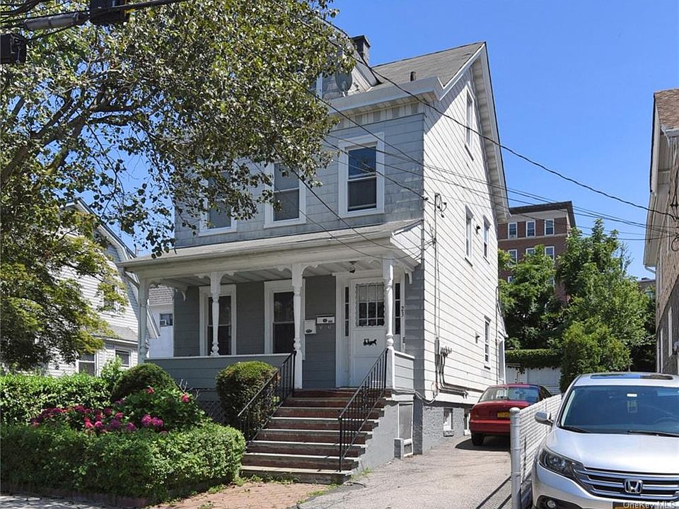 Cozy 2 family home near New Rochelle's downtown epi center with LOW LOW TAXES! First floor offers a large living room, dining area, eat in kitchen with backyard access, bathroom and bedroom. Second floor has living room, dining area, kitchen, bathroom, and access to attic for extra storage or play area. Full finished basement has a family room, laundry room and utilities. Long driveway for extra parking and backyard. There is a large shop that is in the back of the house with plenty of potential. It could be turned into a potential office, shop, storage or garage. Find yourself conveniently located near I95 with access to lots of shopping (Home Depot, Costco, Stop n Shop), great restaurants, parks, restaurants and entertainment at New Roc City. Public transportation available via Metro North at the New Rochelle Station and lots of Bee Line bus options.