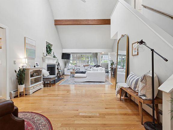 Welcome to this charming home offering the perfect blend of comfort and convenience in a highly sought-after location. The heart of the home is the open living room boasting a gas fireplace and cathedral ceilings creating an airy and inviting atmosphere. The updated kitchen is attractive due to its expansive counter space with new quartz countertops, a sit-up peninsula bar tailored for easy dining and socializing, a dining area, and an abundance of cabinets and storage options. Enjoy relaxing in the bonus all-season room, flooded with natural light. Two main floor bedrooms, including a primary suite featuring a spacious walk-in closet and an en-suite bath, plus a newly added mini split for year-round temperature control. Down the hall, find a versatile second bedroom or office space with built-in bookshelves and a separate hallway full bath. Upstairs awaits a third, oversized bedroom with walk-in closet and full bath. Additional highlights include an attached two-car garage, a private backyard, and the convenience of association living. This neighborhood is right on the edge of Hanover, with sidewalk access to town, and easy access to nearby trails, including Boston Lot Lake and Mink Brook. For storage enthusiasts or those seeking expansion opportunities, the full, unfinished basement offers endless possibilities to customize. This property's convenience is enhanced by its proximity to the public bus stop for Advance Transit and Campus Connector.