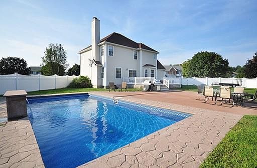 Newly updated colonial in sought after subdivision near The Ranch Golf Course, open kitchen with breakfast nook boasts granite counters, black stainless appliances, all new lighting fixtures, living room has gas fireplace and sliding door that opens to your back yard oasis with built in spa in the deck overlooking your private vinyl fenced yard and salt water in ground pool with waterfall. Second floor with new carpet, updated common bathroom, 4 generous sized bedrooms with the possibility of 2 master options. Oversized master has completely renovated bathroom with walk-in shower with rain head, trimmed with all new tile surround and oasis shower with glass surround. Dual vanities in granite, new led lighting and blue tooth speaker in the bathroom fan. 1st floor laundry additional bonus area in the basement with dry bar and new led lighting. Brand NEW FURNACE & HOT WATER HEATER INSTALLED 10/2018 new security system for maximum protection. Nothing to do but move in and enjoy.