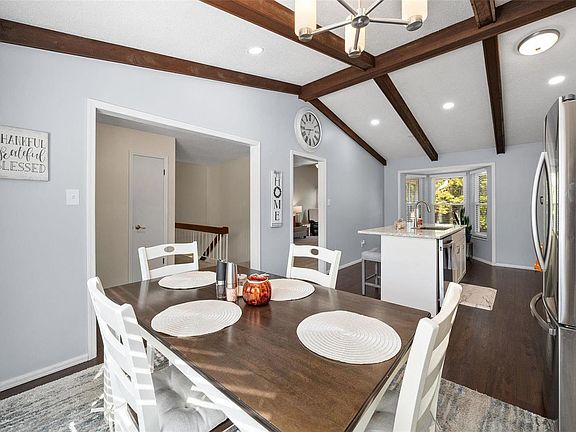 Open Sun 9/29 from 1-3pm. Beautiful ranch home oasis with tons of updates in this secluded, impressive cul de sac! This open and festive floor plan feels like a Colorado getaway with its bay window and exposed wood beams with a view to an expansive, forested back yard. Unwind near the wood-burning fireplace in the spacious living room. The newly remodeled eat-in kitchen is now one-of-a-kind and will be the center of daily living and entertaining - what a great kitchen to start your day! The primary bedroom suite features the remodeled primary bathroom, with 2 more spacious bedrooms and a 2nd updated full bath on the main level. Step out to the secluded back patio where every season will be its own occasion. The basement features a recently finished office/den and closet, and lots of storage is waiting for your finishing touches. The 2-car garage feels nice and roomy, and the driveway is sure to be ground zero for any neighborhood games. Don't miss this one!