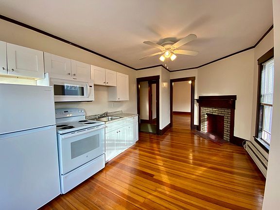 One bedroom unit with fireplace (closed off, but great place for simulated electric logs/fireplace!). Large windows, full bath, original restored hard-wood flooring, brand new appliances and cabinets in kitchen. Located 1 minute walk to the Rail Trail, Micro Creamery, Medusa, Welly's and the rest of the beautiful downtown in Hudson. Parking on-site. Note- this unit has a combination kitchen/living room space. The living room is not a separate room. Ideal for 1 person or a couple. Tenancy At Will - Tenant Responsible for utilities. Non-smoking premises. Parking, snow removal, water/sewer, trash/recycling removal included in rental rate. No dogs. No smoking of any kind, including vape.
