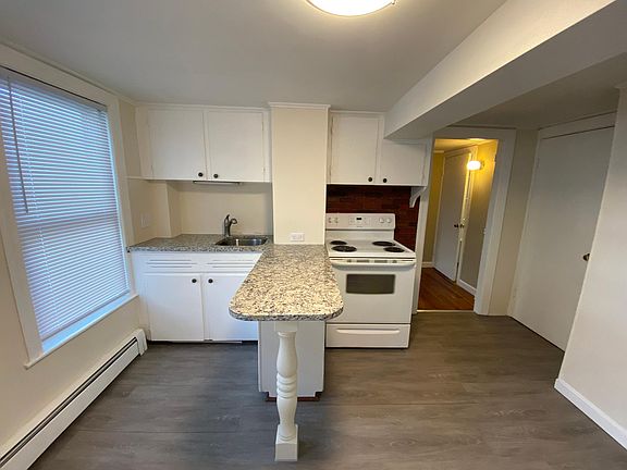 Located in the heart of Downtown Hudson, this newly renovated unit is on the first level of a multi family home owned and managed by Candace Ho and Jacquelyn MacDonald of Maynard. New granite countertop with new sink/faucet. New utilities. Newly rehabilitated wood floors, new flooring on kitchen, bath, closet. Plenty of storage space. Gas heat. Full bath. *Note: unit does not have a separate living room. It is a bedroom/living room combined, and a separate eat-in kitchen. Tenancy At Will (month to month), Tenant responsible for electricity. Hot water, plowing, trash, water & sewer included in rent. No dogs, No smoking, 1 off-street parking spot.
