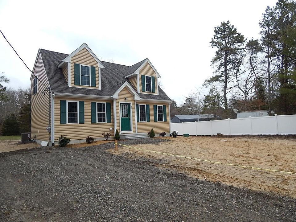 this sweetheart of a brand new home is just off the highway exit ( Rt 3) for easy commute yet tucked down a true country lane with beach on Great Herring Pond - Playground to keep the kiddies occupied and just down the street from Cedarville Village with almost all the daily amenities you might want. - canal walking trail and biking trail just a few mile drive - This home offers open floor plan - large eat-in kitchen with island and sliders to deck and large , level treed rear yard, warm wood floors in living and formal dining ( or make it your office / den) , CENTRAL A/C - A village location doesn't come along like this every day - built to today's stringent energy standards, We even adjusted the floor plan to have a full bath on first floor with enough room for laundry- of course, spring will bring landscaping - also there is a 2nd driveway to the back for ease of parking a boat or camper - NOTE: NEW WHITE VINYL 6 FT FENCE COMING FOR RIGHT LOT LINE