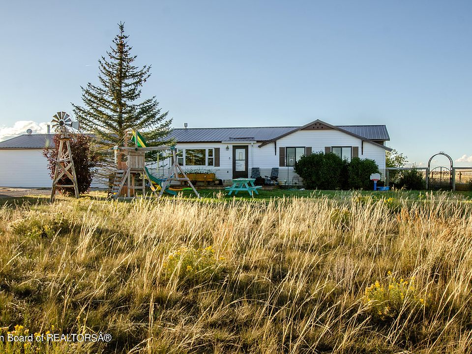 Welcome to your perfect family home nestled on a sprawling 10-acre canvas of natural western beauty! This charming 3 bedroom, 2 bathroom residence offers an idyllic blend of modern comforts and rustic charm. With a total of 2,150 square feet meticulously designed living space, this home offers a lifestyle of relaxation and comfort. As you enter, you'll be greeted by an inviting open-concept layout that seamlessly connects the living, dining, and kitchen areas. Sunlight streams through large windows, creating a warm and welcoming ambiance throughout. The living room features a cozy fireplace, perfect for gathering during chilly evenings, while the dining area offers panoramic views of the surrounding landscape.