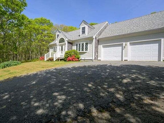 Spacious four bedroom, three bath Cape with two car garage abutting wooded conservation land. This privately situated home features a master suite with two additional bedrooms, full bath and laundry room on second floor. First floor has full bath and another bedroom that could also be used as a home office. Large eat-in kitchen with counter bar, living room, and family room with vaulted ceilings and fireplace. New water heater, updated windows, doors, and azek trim. Full basement with windows, recessed lights, and fireplace provides great opportunity for additional finished space. Close to hiking trails, Sandy Neck Beach, Route 6 & Route 6A. Passing Title V inspection in hand. Taxes may vary due to buyer use. Buyer to verify measurements. Motivated sellers-come make this home your own!