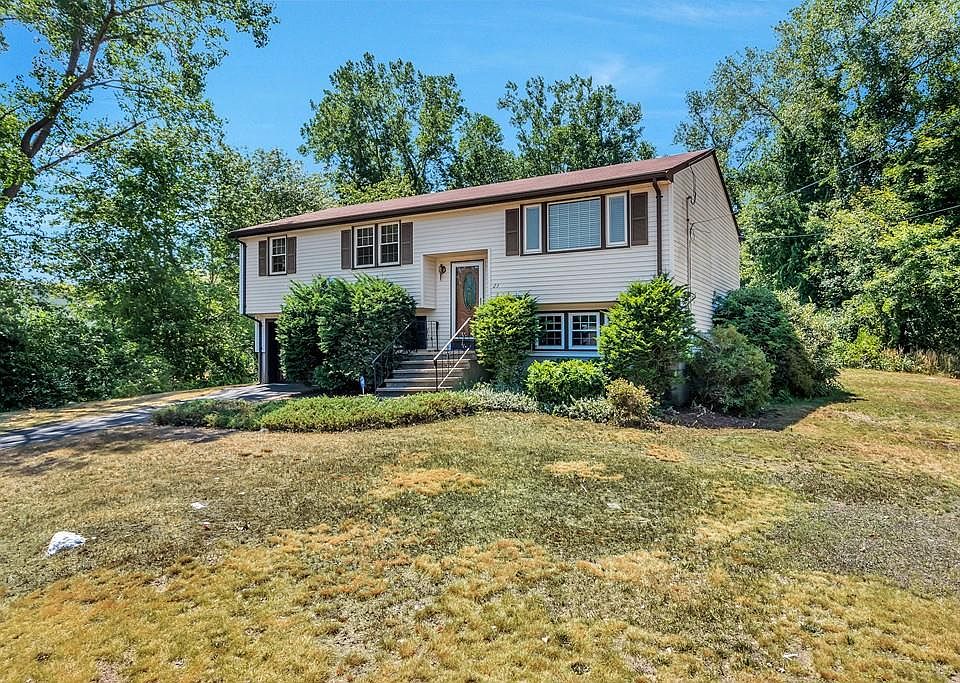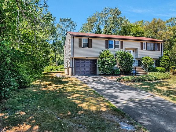 Fabulous well maintained, 3-4 Bedroom Raised Ranch. This home features a large living room as well as a large open kitchen that leads to the dining room. Features include, beautiful hardwood parquet floors, central air, newer roof and windows. Large closets and storage spaces. Bright and freshly painted rooms. 1 car attached garage, vinyl siding, and a large deck leading to a large private yard on almost a half acre. Partially finished basement with half bath could be used as 4th bedroom or den. Located in a desirable neighborhood near schools, seconds to the MBTA commuter rail and with easy access to highways.