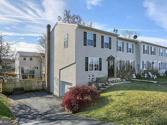 Great end unit townhome in the Village of Valley Green! The main level is perfect for hosting gatherings with great flow through the kitchen, living and dining rooms and new spacious deck off dining room! New floor and paint throughout the living area. Upstairs offers 2 large bedrooms and a full bath. Finished lower level is perfect for additional living space, play room, home gym or office. One car garage and an extra large driveway for off-street parking. New rear deck and patio overlooks fenced in backyard. Low HOA fee includes clubhouse, walking trail, playground, community pool, tennis and basketball courts. Don't miss out on a home in a desirable community, minutes off Rt 83 and close to shopping amenities.