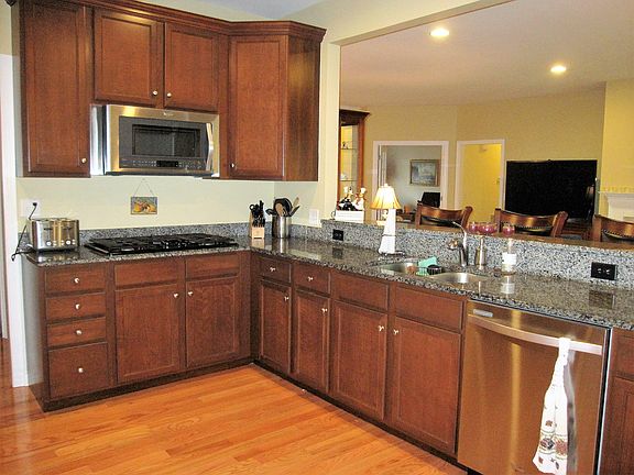 This lovely Adler open floor plan in 55+ Great Island at The Pinehills is located on Clam Pudding Pond with plenty of privacy. Large gourmet kitchen with recessed lights, extended cherry 42" cabinets, gas stove, double ovens, pantry and eat-in area with slider to deck. Enjoy the covered porch with stairs leading down to the backyard and pond. The open floor plan with wide plank hardwood flooring continues with a spacious living room with a second slider to the deck, gas fireplace with marble surround, dining room with wainscoting and crown molding, and a study with French doors. Master and guest bedroom suites on first level. A large unfinished walkout lower level with plenty of room for storage and rough in plumbing for a future bath. Overlook Clubhouse and Amenities in walking distance.
