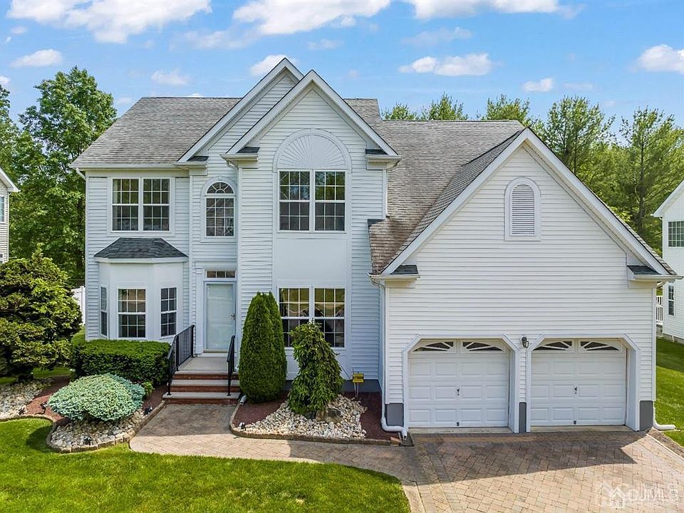 Prime Location Alert! Welcome to this bright & elegant, north-facing custom home nestled in the most prestigious Huntington Hollow community. The main level features a soaring foyer, recessed lights & an open floor plan with an abundance of windows giving lots of natural light. The elegant formal living room is perfect for greeting guests. Enjoy cooking in the spacious kitchen with a center island and a lovely eat-in nook perfect for everyday dining. Relax in the huge family room equipped with recessed lights and wood burning fireplace. A banquet-sized dining room is perfect for gatherings. Conveniently located on this level are a full bath and a good-sized bedroom. On the upper level, enter through large double doors that lead to the magnificent master bedroom that boasts a separate sitting room, a tray ceiling, a huge walk-in closet, and a beautiful full bath with skylight and a high vaulted ceiling. The 3 additional large bedrooms have lots of closet space. A generously sized main bath with a skylight completes this level. The full basement has a vast area suitable for a recreation/exercise room, utility room & lots of storage space. A glass door from the family room leads to the scenic and quiet backyard, with a beautiful stone patio. An excellent place to entertain family and friends! Easy access to Rt 9, GSP, NJ Tpk, NY City buses, train, shopping, dining & recreation. Old Bridge Township is a highly rated school district.