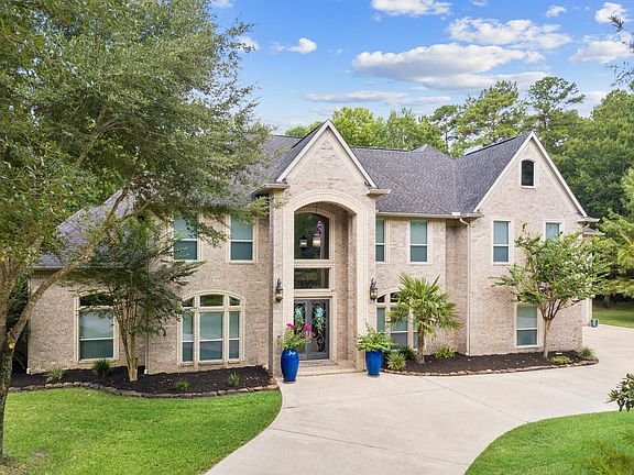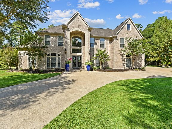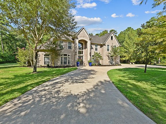 Located in the desirable gated neighborhood of the Ranches of Pinehurst this outstanding home offers privacy, enormous entertaining space with convenient access to The Woodlands. Dramatic entry with sweeping iron staircase, wall of windows overlooking the fabulous backyard, both formals with wood flooring, huge master retreat with sitting room, exercise room & fireplace, powder with travertine sink, study with extensive built-ins and shelving, gourmet kitchen with butlers pantry, wine fridge, two warming drawers, double oven, vegetable sink, compactor, 6 ring gas range & large breakfast bar. Upstairs an incredible game room, outside patio with spiral iron staircase to below, extra room with full bar, fridge and media room with 110" TV screen. 3 large secondary bedrooms with walk in closets. Tropical backyard with summer kitchen, fridge, 3 burners, griddle, grill & pool bath with shower. Sparkling pool with water features. 4 car garage with epoxy coating. The perfect entertaining home!
