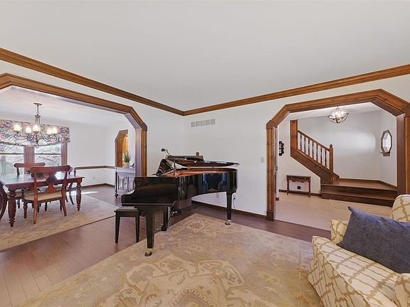 Pride of ownership shows in this well-kept 2-story in the desirable Heritage neighborhood. Wood flooring graces the main level living areas. Lots of windows bring in natural light. The updated kitchen offers tons of countertop space, custom cabinetry, stainless steel appliances and ceramic tile flooring. Relax in the family room near the cozy gas fireplace under the vaulted ceiling. The upper level boasts 4 spacious bedrooms including the primary bedroom which offers an ensuite with dual sink vanity, a soaking tub, step-in shower and and walk-in closet. The finished lower level offers a sleeping room/office/home gym, full bath and a huge rec room, plus a large storage room! The side-entry 2-car garage features an epoxied floor and professionally installed organizing system! In the warmer months enjoy time on the deck just off the family room or watch the world go by from the charming, covered front porch. HVAC, 2020