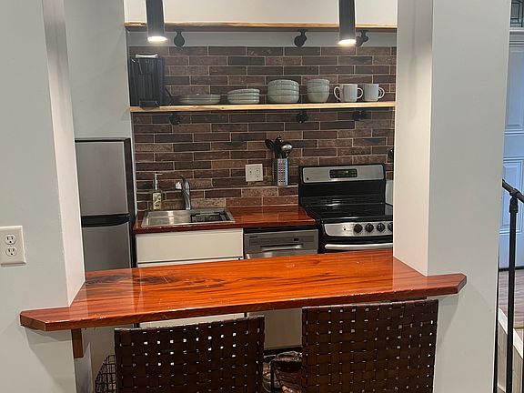 Furnished studio apartment in 100 yr old charming house. Studio completed in 2022. Super convenient to Haywood Rd. Utilities included. Great bathroom with fabulous shower! combo W/D. Looking for Smoke free, clean, with good credit and references. Flexible lease terms. Two other units have quiet tenants. Off street parking and basement storage space available. Prefer longer term lease but flexible with so many people struggling right now. Owner pays utilities and lawn care. No smoking. Pets on case by case- no obnoxious barking or aggressive dogs. It's a small space so no large dogs.
