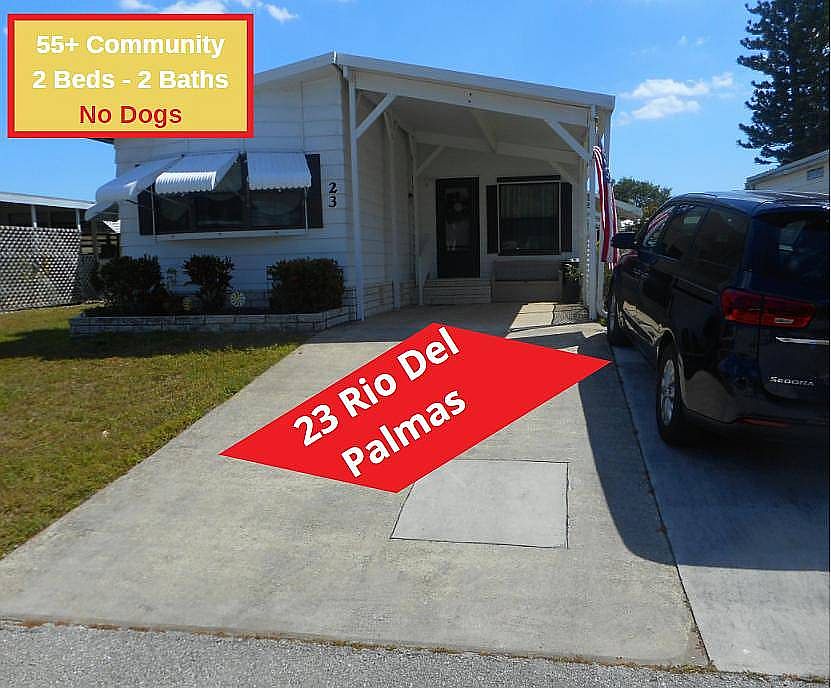 How affordable is it to buy and retire here in Country Club??? On average, Lot rent-water-electric-Insurance and cable comes up to about $1188 per month. You can do this here at 23 Rio Del Palma! Remodeled kitchen and bathrooms set this home apart from similar models. This home is in a non-pet (no dogs) area of the park. Beautiful interior being offered with nearly all the furniture. This home has been well maintained and cared for. Ready to move in, this home features large living areas including the family room, living room and both bedrooms. Furnished Florida Room and furnished outside patio compliments the 1368 Sq/Ft of living space. The roof was replaced in 2019, and the AC replaced in 2011. Call for details!