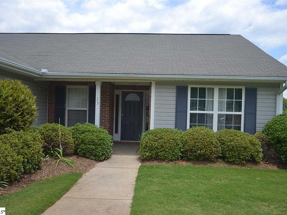 Lovely 3BR/2BA One Story TownHome with a split floor plan. Kitchen is large with enough room for table and chairs. It also has lots of cabinets and lots of counterspace. The center island offers more seating, as well as additional storage. Entire interior of house was just professionally painted and new kitchen flooring installed. Washer, Dryer, and Refrigerator all convey with sale of house. The backyard is fenced and is a nice size with a large patio for grilling or sitting and relaxing on those nice weather days. Location, Location, Location...Gated Community, near Award winning Riverside schools, close to GSP Airport, Close to good Restuarants, Shopping, and minutes from Downtown Greenville, as well as, close to downtown Greer.