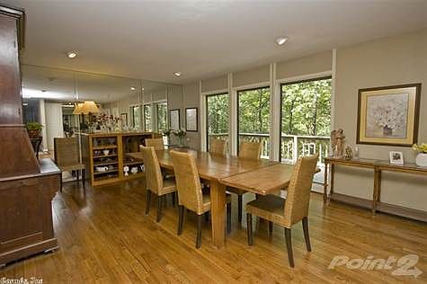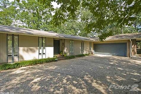 Mid-century contemporary that has been beautifully updated backing to greenbelt! Main level is totally open w/great room, dining room and kitchen w/granite and stainless, two offices, powder bath and a deck stretching the length of the home overlooking the woods. Downstairs are 3 bedrooms and 2 full baths, a laundry room and small deck off master. Two car garage. Very unique and private!