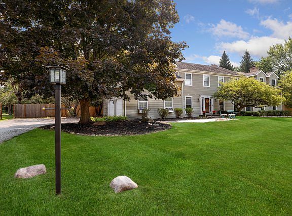 Extensively updated 5-bedroom + loft colonial smart home! Located on nearly an acre Cul-de-Sac lot with new privacy fence! Recently remodeled kitchen with huge granite breakfast-bar island plus table space! New stainless steel KitchenAid appliances! 6 burner range w/griddle! Wi-fi enabled ovens! All bathrooms are totally updated, Hardwood floors throughout the first level! Primary suite features remodeled bathroom, tray ceiling, and huge walk-in closet with built ins! Vaulted ceilings, skylights and large windows bring in natural light! Crown moulding trimmed interior! Formal dining room opens to huge living room. First floor laundry room. Look out on your landscaped, private yard with privacy fence from your insulated 4-season room with skylights and gas hookup! Brick paver front walk & back patio! Surrounded by nature and close to Fox River marina and preserves. Full finished basement features rec room, entertainment area, workroom, and possible 6th bedroom, Private, secluded home nestled away from it all, yet with easy quick access to shopping, restaurants, transportation, and award-winning Barrington schools! ***Part of the house has roofing that is nearing need for replacement. Seller has 3 estimates they can share and is willing to credit accordingly***