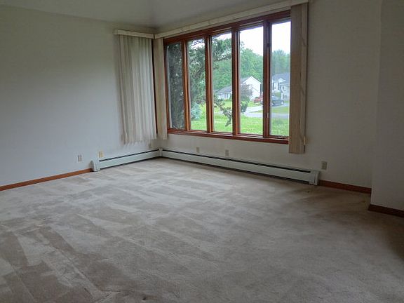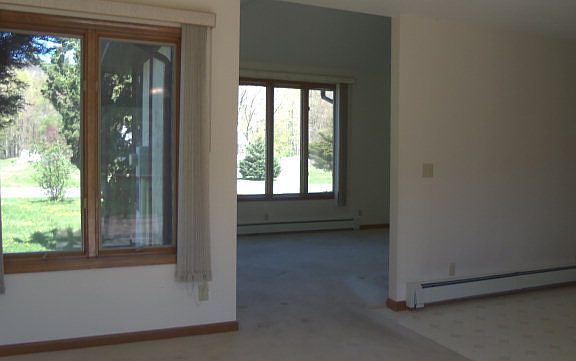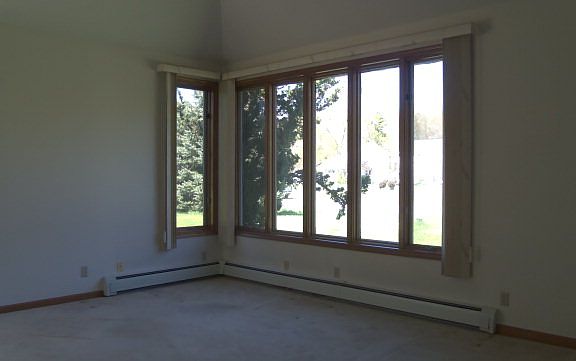 This 3 bedroom contemporary stucco home was built with a modern design that results in high ceilings, lots of natural light, and easy living. Tucked softly on a large vibrant green yard in a cul-de-sac, this home has an enhanced sense of space. The palate is clean and waiting for new inspiration. 6-panel wood doors throughout interior, vaulted ceiling living room, dining room with sliders to deck and spacious level lot. Aristokraft cabinetry. Full useable high ceiling basement. Lovely views, tranquil peaceful setting.