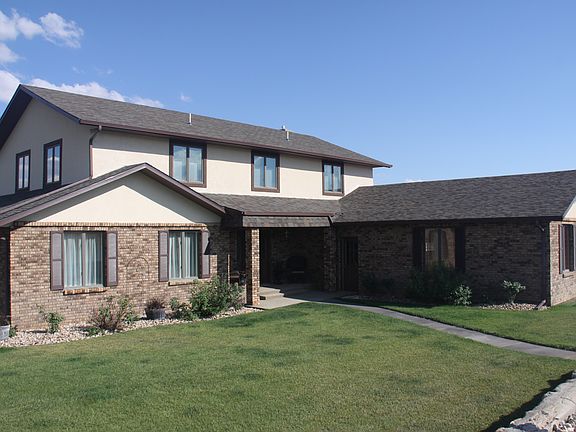 Beautiful home located on the edge of Buffalo w/ panoramic views of the Bighorns and Buffalo. On 3.42 acres beautifully landscaped w/ an outdoor swimming pool. The home consists of 5 bedrooms and a non-conforming bedroom in the walk-out basement. Beautiful open kitchen w/ double ovens & oak cabinets, dining area w/ a formal living room & 2 family rooms, 1 on the main floor & 1 downstairs. 1 room has a separate entrance & can be used as an office or bedroom. Large master bedroom w/ master bath and walk in closet. Gas fireplace in family room and many updates go w/ this home such as a new roof and rain gutters, new stucco siding to compliment the brick siding, front door, sprinkler system, reverse osmosis in kitchen, filter & softener system & more.