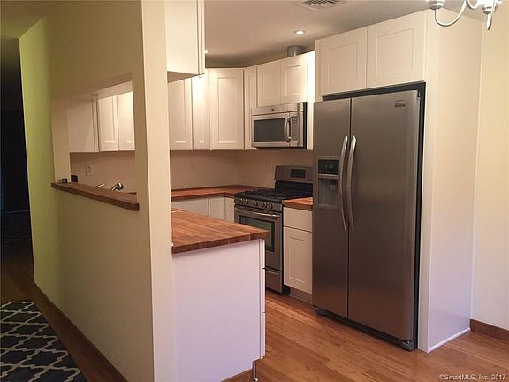 This move in ready townhouse is located in "Rock Hill", a well maintained community that is a hidden gem tucked off a small cul-de-sac in Fair Haven Heights. It has just been beautifully updated and freshly painted throughout. The main level, with new bamboo floors, features a gorgeous new kitchen with Shaker style cabinets, butcher block counters, recessed lights and stainless steel appliances; newly renovated half bath with tile floor and a large living room with slider to deck. The upper level features a large master bedroom with slider to deck, remodeled full bath with tile floor and second bedroom. Newer lighting fixtures. New gas water heater. It's just a hop, skip and a jump to Downtown New Haven, Yale, hospitals, train station, I-95 and I-91!