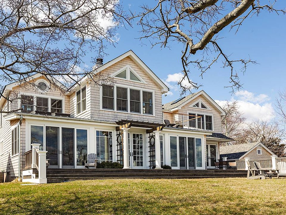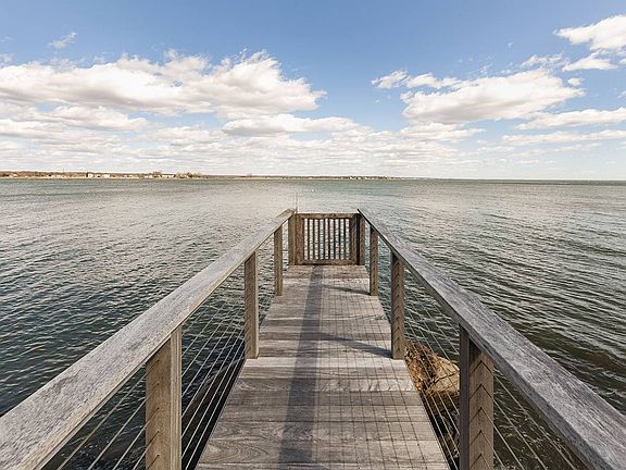 Magnificent views of Long Island Sound and the Connecticut Shoreline! With 100 feet of direct waterfront on Long Island Sound this beautiful home was built new in 1993 and recently renovated. This contemporary waterfront colonial presents a classic cottage face to the street and a bright, open, design interior that captures the stunning views of Long Island Sound. This house is filled with light and air. The 1st floor has a wonderful design which allows for the up-to-date kitchen with professional six-burner Viking range with griddle, two ovens and Viking hood in one sector, plus dining area, living room, and sitting room. While the feeling is open and connected, each space feels distinct and defined. The defining element of the home is the central four-sided fireplace that can be enjoyed from any vantage point. The balance of the first floor has a mud room/foyer on the street side, a full bath and a large family room that is a playroom/TV room but can serve as a large 1st floor bedroom. Every 1st floor room has access to the redwood decks. Upstairs the views continue! There are four bedrooms, including the primary bedroom, a full bath, and a shower room. The primary bedroom has a walk-in closet and access to a private deck: perfect for a private morning coffee and gazing at the view. See additional remarks The spacious level yard goes down to a waterside stone patio with an outdoor fireplace as a bonus feature. From the patio there is direct access the private pier and an aluminum gangplank and floating dock. There is space between this and the neighboring north property, so privacy is achieved. There is an underground cistern fed by rainwater from downspouts for gardening and boat washing. There is new cedar wood shingle siding on the house. Also new are the roofs on the house and garage, 22 skylights, eight ceiling fans, all windows, and all water-side doors. Additionally, there is a newer furnace, tankless hot water, and central air conditioning, with four heati
