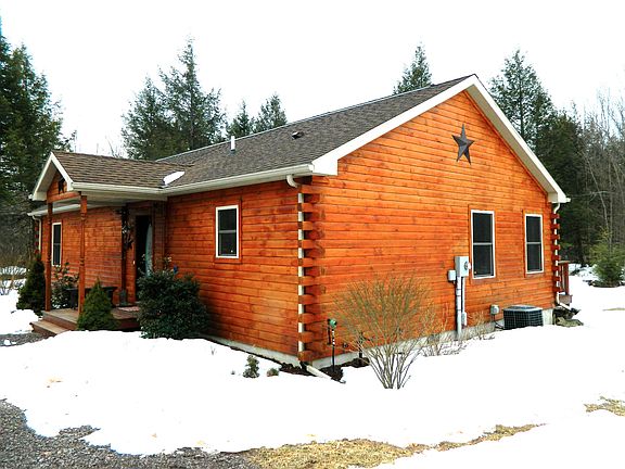 Immaculate, newer log-sided home in Frost Hollow North Subdivision. This gated development borders BOTH Ricketts Glen State Park AND State Gamelands #13. Private and secluded, yet easy access off of Route 487. Hunt, fish, swim, hike--outdoor fun galore from this year-round or seasonal home. Large great room with vaulted ceiling and gas fireplace, open living space, 2 bedrooms and 2 full baths. Don't miss this one!