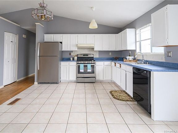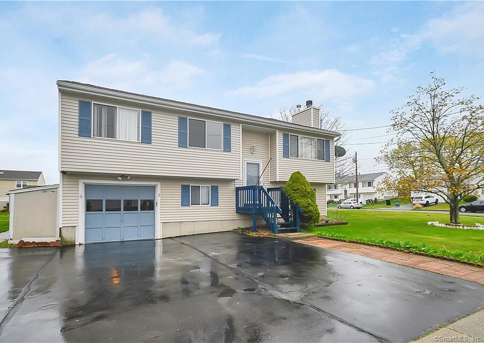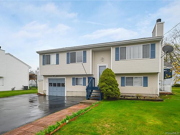 Desirable culdesac location, spacious and priced to sell! RR offers great space with 3 BRS/ 2 FULL baths. One full bath is brand new with a tile walk in shower! Kitchen refreshed with white oak cabinetry. Stainless appliances, Tile floor and sliders to deck. Plenty of space for an island or dining area/open to Living room w/hard wood floors and fireplace. Kitchen/Living room freshly painted. Three bedrooms/full bath complete this level. Lower level has wonderful space and potential for inlaw. Family room/office/laundry room/full bath on LL. There is a fenced in area of the level back yard and shed. Gas heat, CA, public water/sewer, vinyl siding for easy living. Awning cover is less than two years old/stored but will convey. Gazebo Neighborhood is minutes to water, town beach, green/New Haven. NO flood ins.You will enjoy living in this home and location! Homes on this street go quickly! Come see for yourself! Priced to sell. Carpet in LL could use replacing. Hot tub has not been used in a few years but worked fine last time was used. selling as is. Supplies will be left under kitchen sink. Piano can stay or be removed.