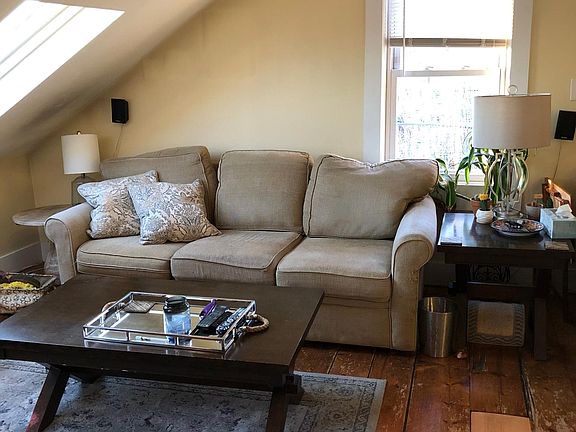AVAILABLE OCTOBER 15th - Cozy two-level 2nd floor apartment available for a yearly lease on 15 October. Convenient location in heart of downtown Newport. 2 bedrooms, 1 bath, galley style kitchen, dining room, living area with skylights and wood burning stove. Small pet upon approval. Shared back yard deck and small fenced yard, laundry facilities. Monthly rent $1850/month includes water. Unfurnished, cap of $100 total water usage monthly, Landlord pays for trash, yearly lease only.